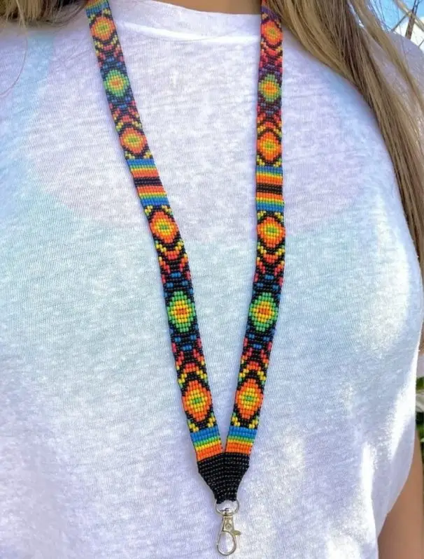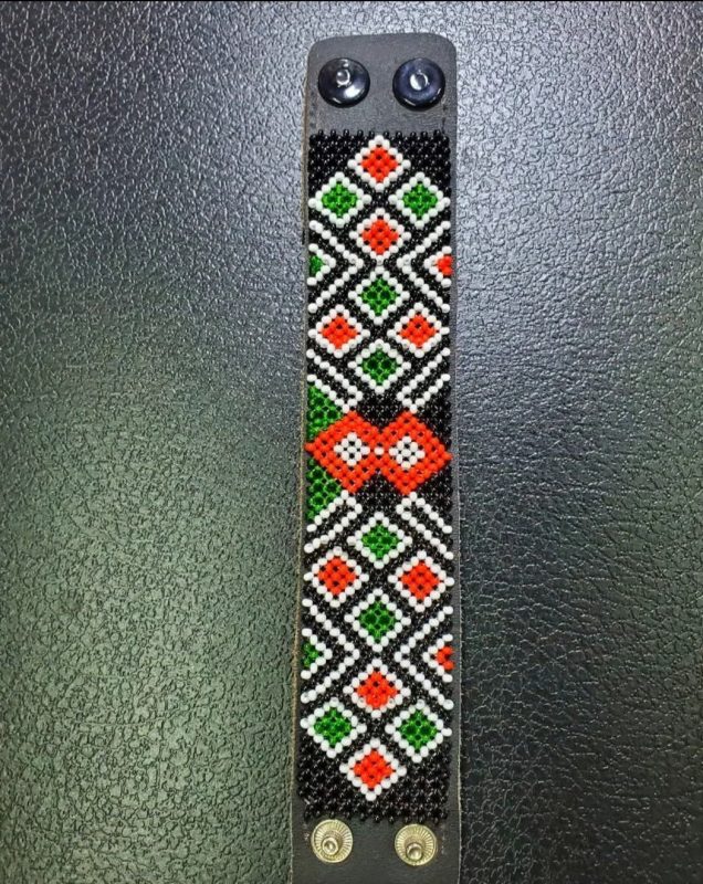 Beaded white, grey and black belt